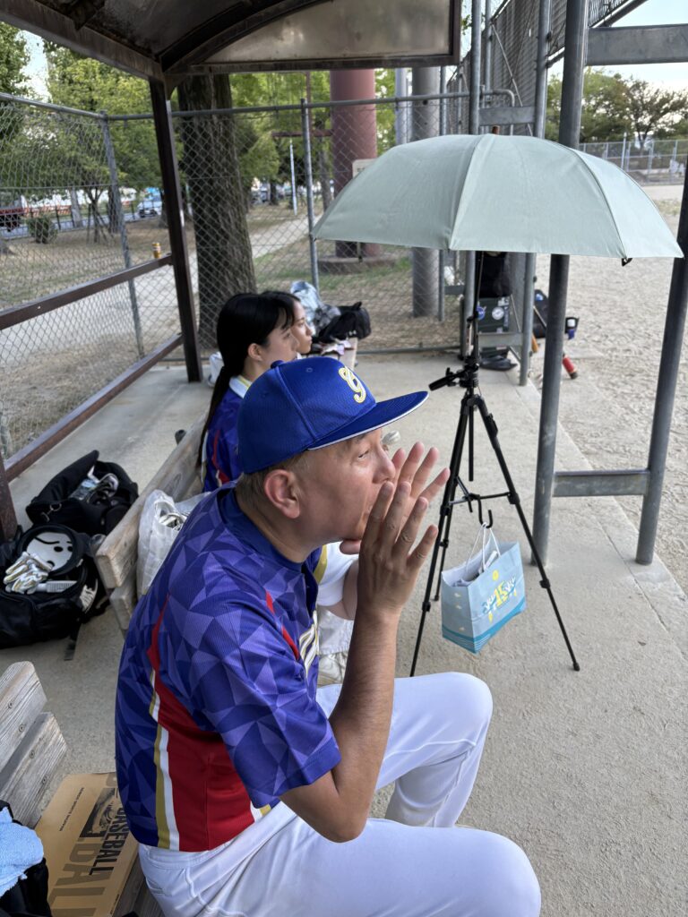 今朝は波除にて、インディアンスさんとの試合でした。監督さんも張り切ってレフトで出場笑。